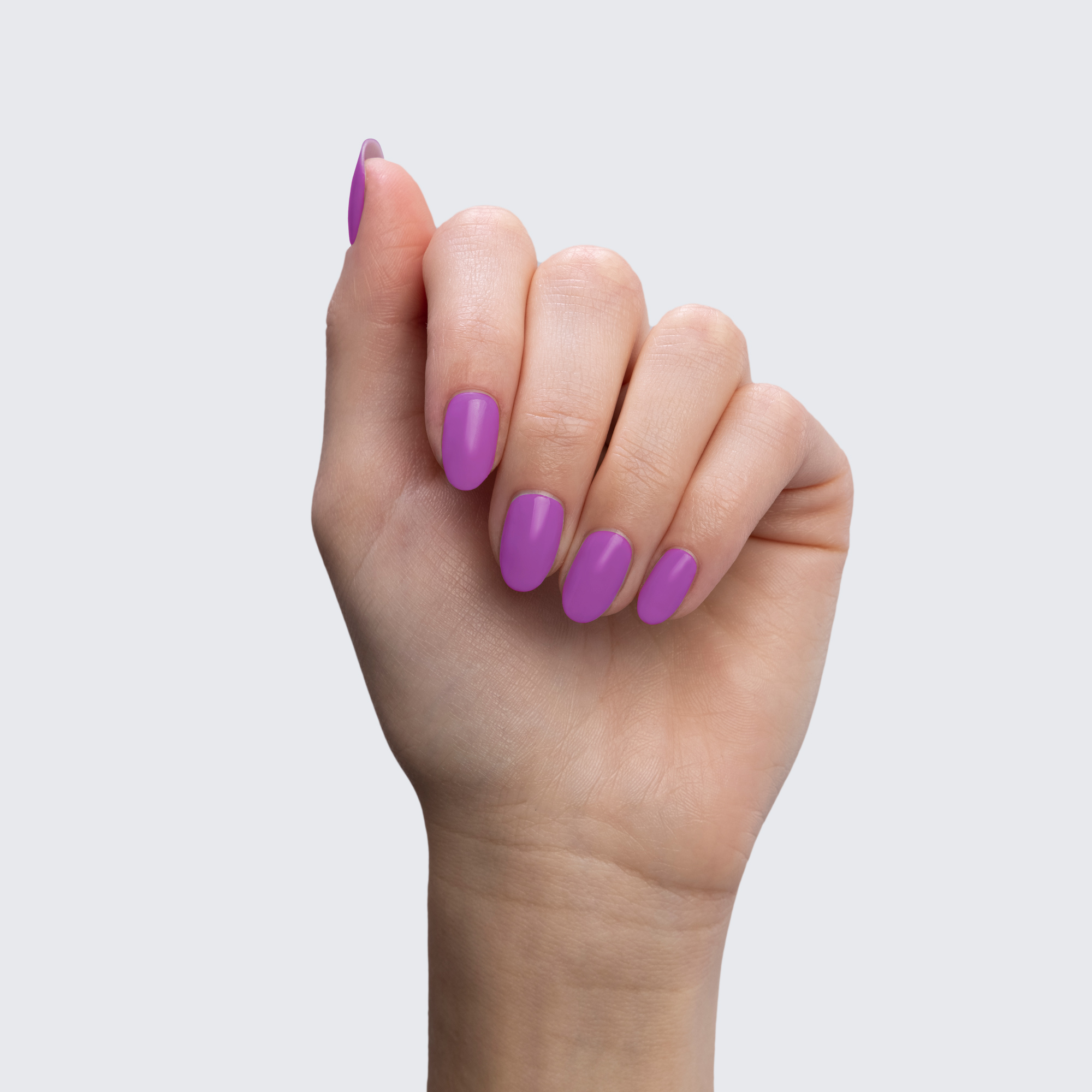 Neon purple. Light. Opaque. Cool undertone. Semi-gloss.
